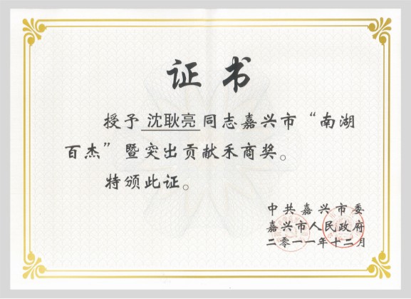 日前,第二屆嘉興市“南湖百杰”優(yōu)秀人才表彰大會(huì)隆重召開,我公司董事長(zhǎng)沈耿亮喜獲“‘南湖百杰’暨突出貢獻(xiàn)禾商獎(jiǎng)”。