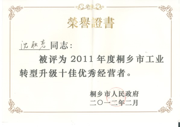 會(huì)上公布了2011年度表彰名單,我公司被評為“2011年度桐鄉(xiāng)市工業(yè)轉(zhuǎn)型升級十大突出貢獻(xiàn)企業(yè)”、“國家級安全生產(chǎn)標(biāo)準(zhǔn)化企業(yè)”。公司下屬子公司桐鄉(xiāng)上升膠帶有限公司被評為“2011年度桐鄉(xiāng)市出口十強(qiáng)企業(yè)”。同時(shí),公司董事長沈耿亮榮獲“2011年度桐鄉(xiāng)市工業(yè)轉(zhuǎn)型升級十大優(yōu)秀經(jīng)營者”榮譽(yù)稱號。