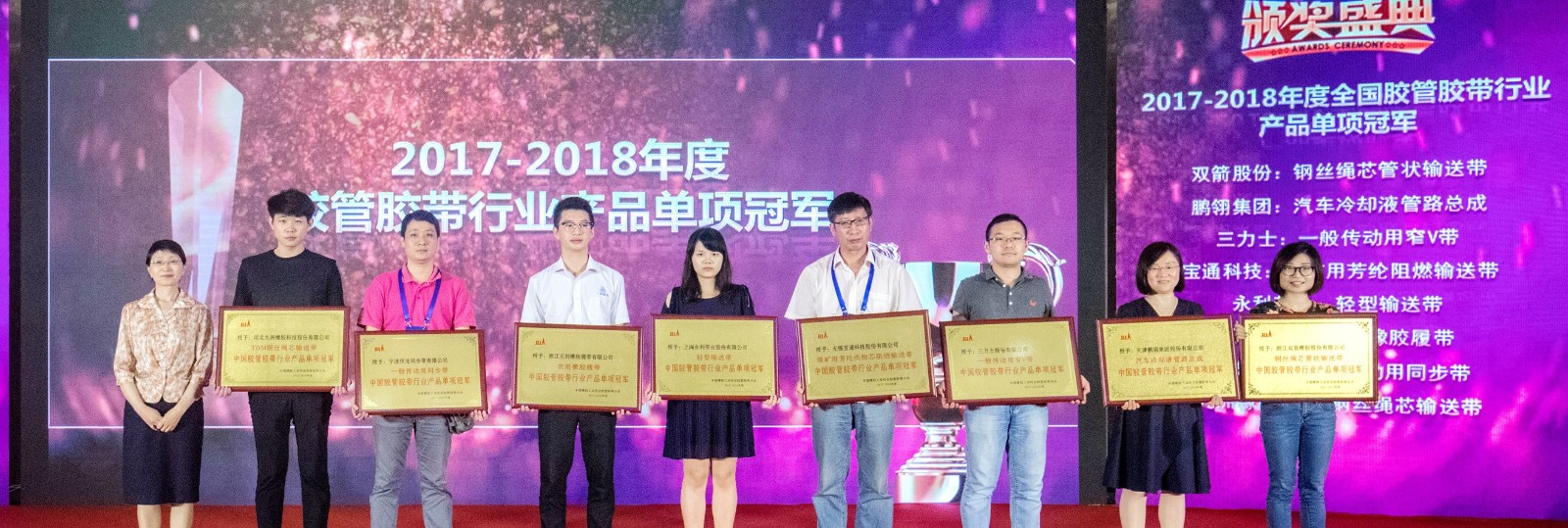 作為中國(guó)橡膠工業(yè)協(xié)會(huì)副會(huì)長(zhǎng)單位、膠管膠帶分會(huì)理事長(zhǎng)單位,雙箭股份始終牢記行業(yè)使命、追求品質(zhì),一直致力于綠色環(huán)保節(jié)能產(chǎn)品的開發(fā)創(chuàng)新,引領(lǐng)行業(yè)發(fā)展未來(lái),連續(xù)八年位列“中國(guó)輸送帶十強(qiáng)企業(yè)”之首,公司研發(fā)的鋼絲繩芯管狀輸送帶榮獲“2017-2018年度膠管膠帶行業(yè)產(chǎn)品單項(xiàng)冠軍”